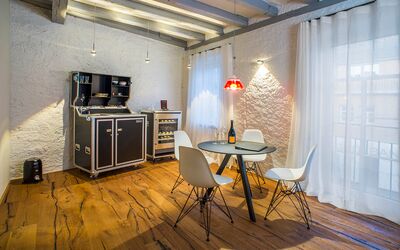 In the suite there is a "cold" kitchen with a refrigerator, dishes, cutlery, glasses, an espresso machine, a tea and an egg maker and much more to prepare little snacks in between.